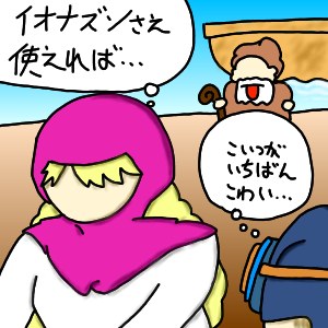 こんだけ金があればとりあえずデジカメ買っとくでしょうというぐらいゴールドがたまっているボケ・ツッコミ・大ボケのパーティーは、武器屋で身かわしの服(×3)と魔道士の杖(×2)をキャッシュでぽーんと購入した。やっぱり世の中、金だよな(いやな一言)。