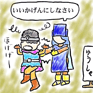 ところで、戦闘中にモンスターがメダパニをかけて来て、仲間がとち狂っちゃうというシチュエーションがある。そんな時、「ドラクエ3」では仲間を攻撃してショック療法を行うことができるのだが、これって、ボケた相方にツッコミを入れるようなもんだよな。ちょっと違うか。