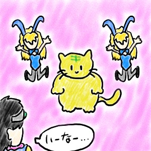 キャットフライ(羽の生えた猫)を倒したら、ぬいぐるみというアイテムを落とした。何だろう。全員装備できるみたいだけど、とりあえずほしのに装備させてみることにした。すると....