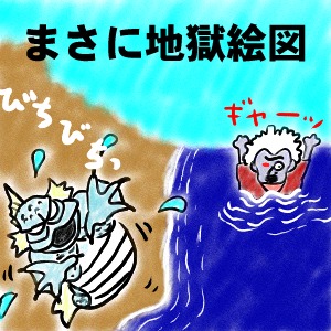 昨日までサマンオサ周辺で無用な殺生を繰り返していたんだけど、ここに来て今のレベルではサマンオサの敵がキツイということに(今更のように)気がついた一行は、スーの村へ移動することにした。ここは海沿いということもあり、陸地にマーマンが乗り上げて来たり、海上にゾンビが現れたりと、生態系がちょっと変。