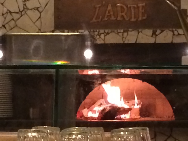 代わりに、燃えさかるピザ焼き釜の写真など・・・ラルテ釜