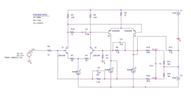 ただし、フィルタを入れるとなると、差動のフィルタなので絶対に帰還抵抗の値を一致させておかねばならないので、必然的に金田氏と同様のバランス抵抗を挿入するか、もしくは出力にエミッタフォロワを追加するか、になる。