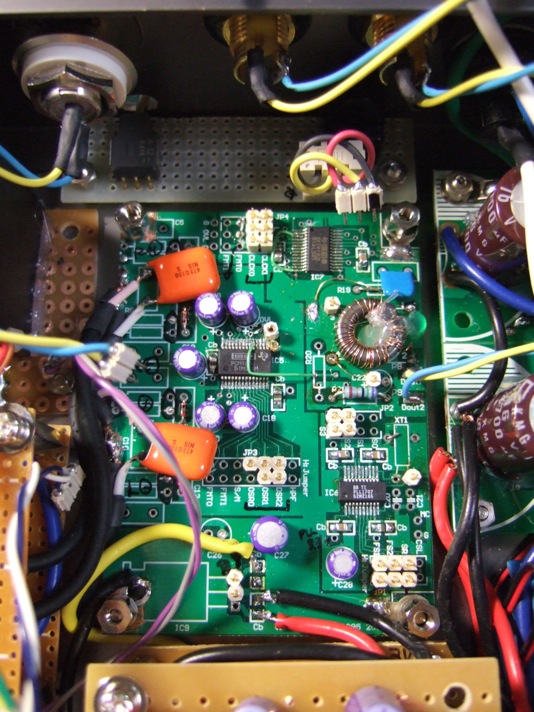 自作のAKM系のADCが既に2台稼働中だが、金田氏のADC発表に触発?され、かつfujiwara氏の基板を既に購入しており(ディジタル部分は金田氏の回路とほぼ同じ)、これを利用して金田氏の回路を組み込むこととした。