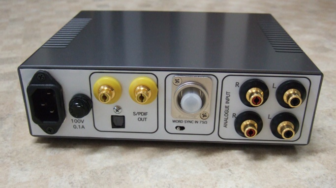 リアパネル。S/PDIFは同軸2(逆相)とTOSLINK。WordSync入力はBNC。下のスイッチはWordSyncの位相切替に使おうと思ったが、現在未使用。アナログ入力は二系統あるが並列になっている。別のレコーダに並列接続できる配慮。