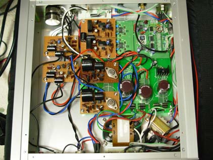 真ん中には+5,−5VPPR。左側にVGAバッファ。その下のスペースに、今後、ミューティング回路を付け加える予定。