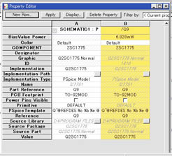 OrCAD Captureにおいて、PropertyEditor(回路図上のパーツをダブルクリックすると表示される)のスプレッドシートの横表示と縦表示とを切り替えられます。CQ版でのデフォルトは横表示で、見にくい事があるので、切り替えておくと便利です。