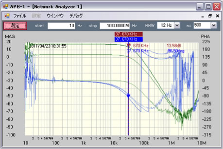 測定は、PROBE BUFFER AMP (プローブ10:1,ATT:1/10、GAIN×10)→本機アイソレーションアンプ→APB-1(-10dB出力)で、キャリブレーションは全部の測定器を含めた状態で行った。