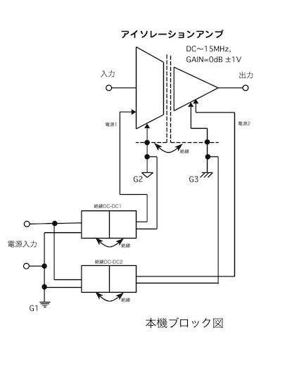ブロック図は以下の通り。二段アイソレーション、つまりGNDが三種類ある構造となっている。