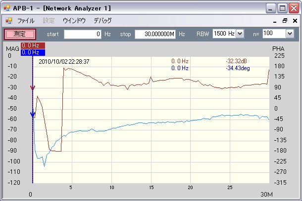 30MHzまでの伝達特性、高域で若干CMRR(50Ω負荷時アイソレーション)悪くなってる。