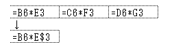 数式バーには、=B6*E3 と表示されますね。