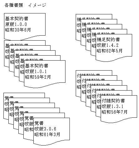 特に、申請書類とか、契約書・覚書などは、作成当時からの物がベースにありな
