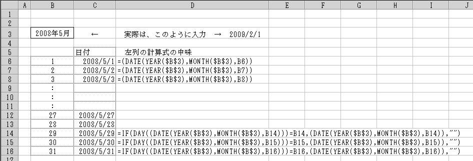 該当月の最終日よりも次の月になってしまうことが分かったら、その日付を空