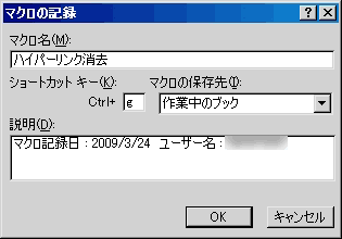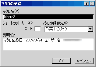 「マクロ名」を入力します。名前は後で分かれば、何でも結構です。