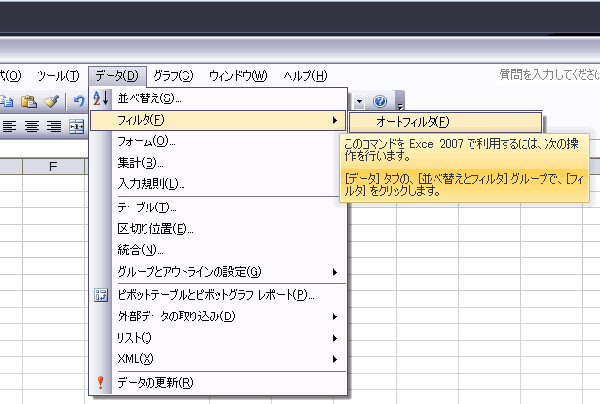 最初に、2003のメニューに、2007での操作説明が表示されましたね。