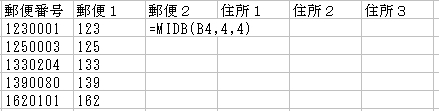 今の状態は、「郵便番号」の文字列を数式で前と後に分けていますから、次は