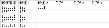 すると、郵便番号のウシロ4桁が表示されます。