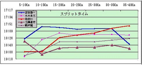 「吉田さんは、10−15KMでペースをあげ、そのまま頑張り、その貯金でラストのペ