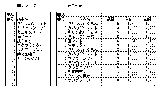 んです。この例題では、わざとらしく同一商品でも単価を変えていますが、イメージとしてこういう