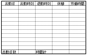 ◎「出勤時刻」から「労働時間」の下のセルは、