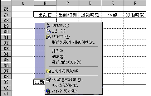 このような、日付の入力や時刻・時間数の入力の場合は、入力すべきセルにあらかじめ