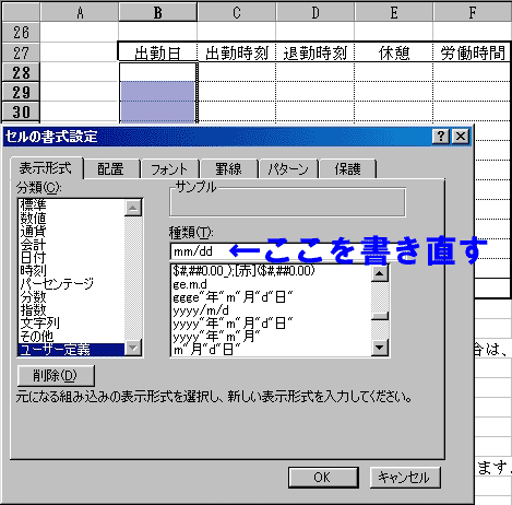 D)「種類」の中の文字を消して、mm/ddと入力します。