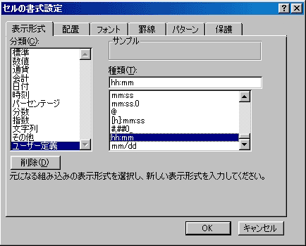 D)「種類」の中の文字を消して、hh:mmと入力します。
