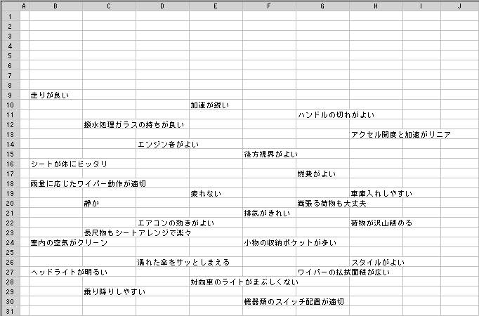 4.並び方を考えずに、適当にセルをクリックして入力を続けます。