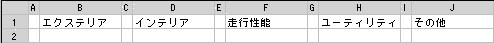 入力場所は、シートの一番上の行でセルを一つおきに横並びで入力します。