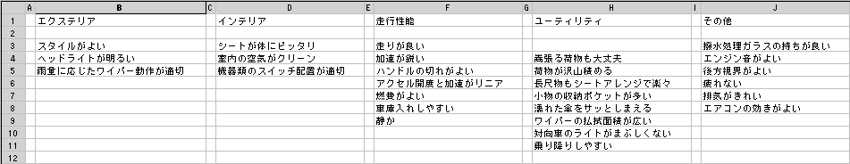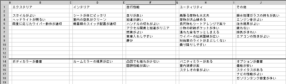 1.例えば、快適な車の条件について考えてみます。