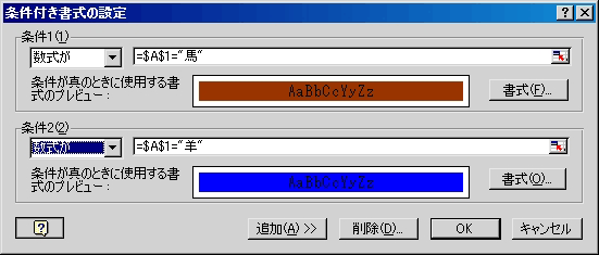 A.この例では、A1のセルに、馬と入れると馬の色が変わるよう