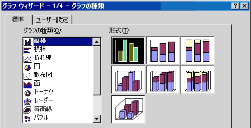 ツールバーのグラフウイザードをクリックし、棒グラフが選択されているのを
