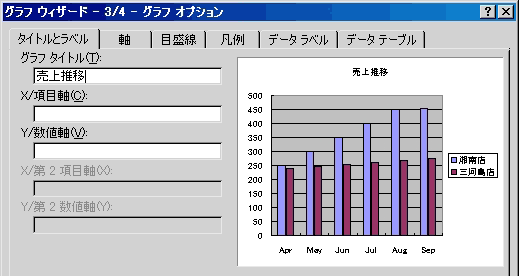 今回は、グラフウイザードで作った後、だんだん内容と濃くしていく方法を