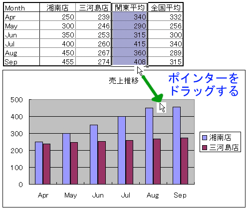 そうかー、グラフの元データを増やして、それからドラッグしても同じ結果が