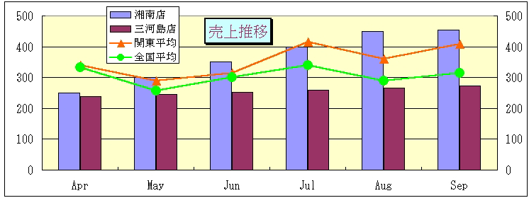 A.基本の作りは、個別データは棒グラフで、比較用データは折れ線グラフで作