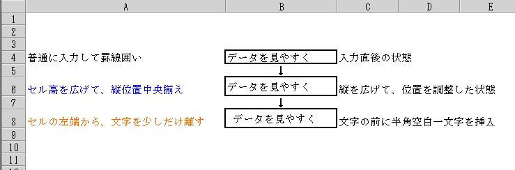 です。上下の隙間なら、セルの高さを変えてデータ位置を縦の中央に置