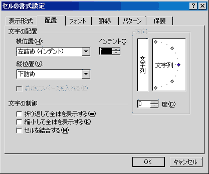 「インデント」の上向き▲を一回クリックして、1を表示。