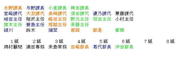 | | 宮崎課代 | 大友課代 | 長峰課代 | 須田課代 | 濃乃課代 | 兼藤課代 |