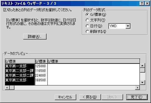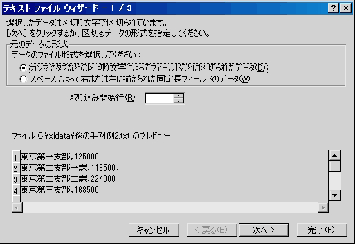 A.そこで、「元のデータの形式」の選択は、上の方の○に●が付いていることを