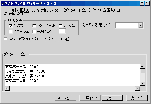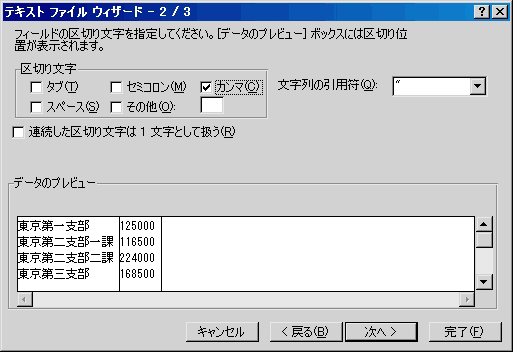 今度は、「区切り文字」の「カンマ」の前の□を、チェックしてください。