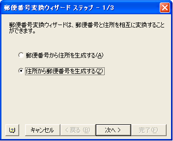 郵便番号変換ウィザード ステップ−1/3 が表示されますので、