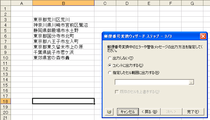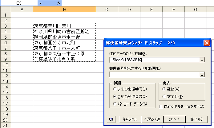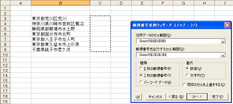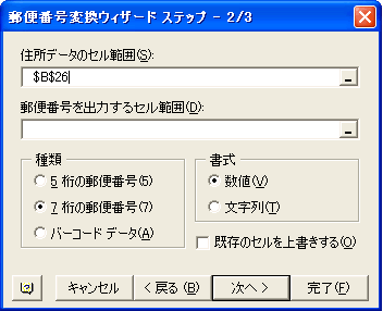 郵便番号変換ウィザード ステップ−3/3 が表示されます。