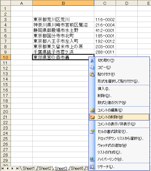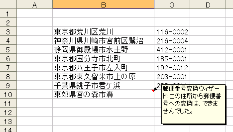 Q.一番下にわざと入れたあり得ない地名には、セルの右上に赤い▲が付いて