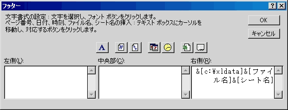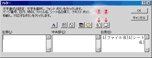 のバージョン2002(XP)や2003では、「フッターの編集」の下