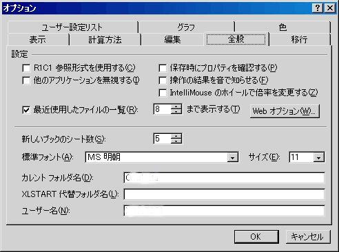 では、「オプション」の「全般」を見てみましょう。