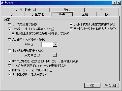 ここでは、真ん中にある「入力後にセルを移動する」に注目します。