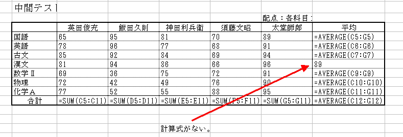 Q.以下のシートをチェックしていたら、平均点がおかしいんです。