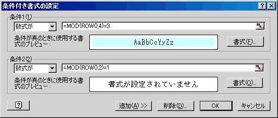 14.「OK」をクリックすると、一行おきに、二色に塗り分けられています。