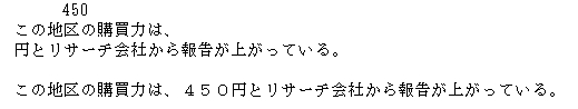 この地区の購買力は、450円とリサーチ会社から報告が上がっている。