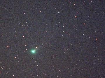 テイバ−彗星 1996Q1 1996年10月10日 25時21分 9分露出 撮影地:松山市エリエ−ルゴルフ場 望遠鏡:7.5cm屈折望遠鏡 百武彗星が去った後ひっそりと現れた彗星です。百武彗星の尾があまりにも長かったため、あまり話題にはなりませんでした。しかし、彗星としては、尾も長い方で、登場したときが悪かったようです。