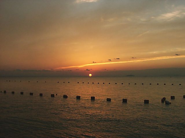 秋の夕暮れ 1999年10月18日 17時30分 オ−ト露出 伊予市森海岸で撮影 カメラ:カシオデジタルカメラ QV-8000SX 40mmと320mm(35ミリ換算) 1999年は、雨が多い夏でした。秋になっても台風や秋雨のため、晴れ間がとても少なくなりました。しかし、当日は久しぶりの快晴、水平線に沈む夕日がきれいでした。